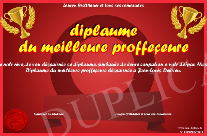 Envoyez par email votre diplaume du meilleure proffeçeure personalisé