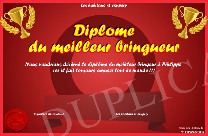 Envoyez par email votre Diplôme du meilleur bringueur personalisé