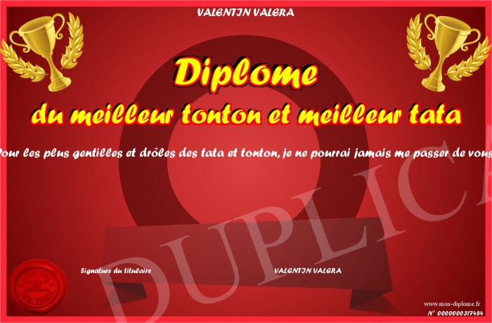Envoyez par email votre Diplôme du meilleur tonton et meilleur tata personalisé