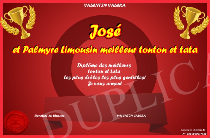 Envoyez par email votre José et Palmyre Limousin meilleur tonton et tata personalisé