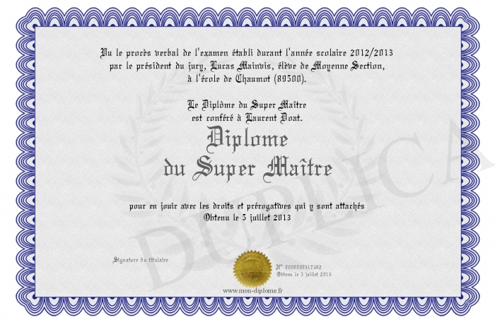 Envoyez par email votre Diplôme du Super Maître personalisé