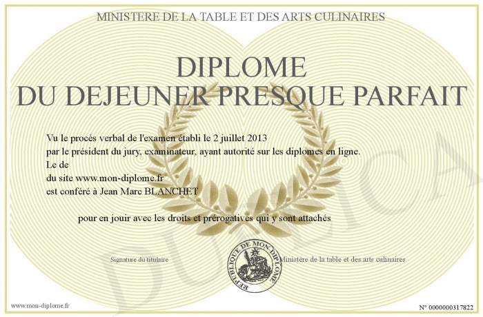 Envoyez par email votre DIPLOME DU DEJEUNER PRESQUE PARFAIT personalisé