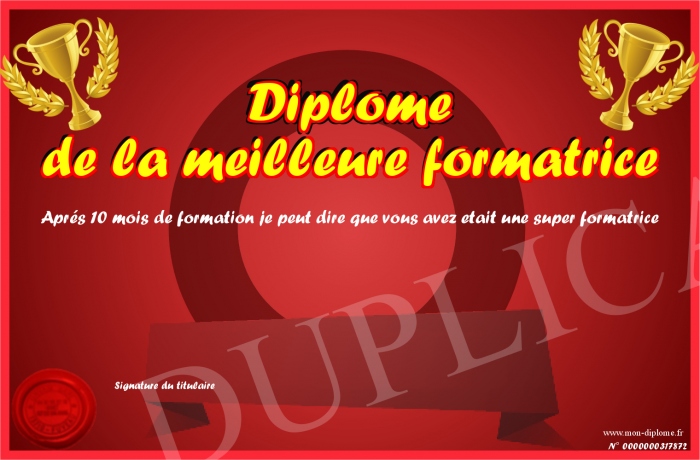 Envoyez par email votre Diplôme de la meilleure formatrice personalisé