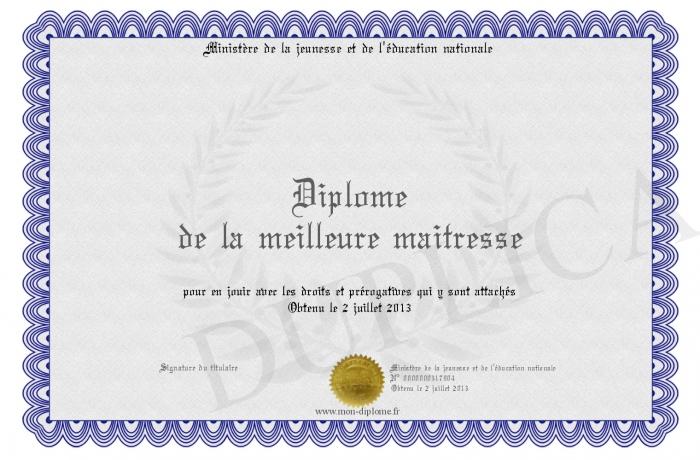 Envoyez par email votre Diplôme de la meilleure maitresse personalisé