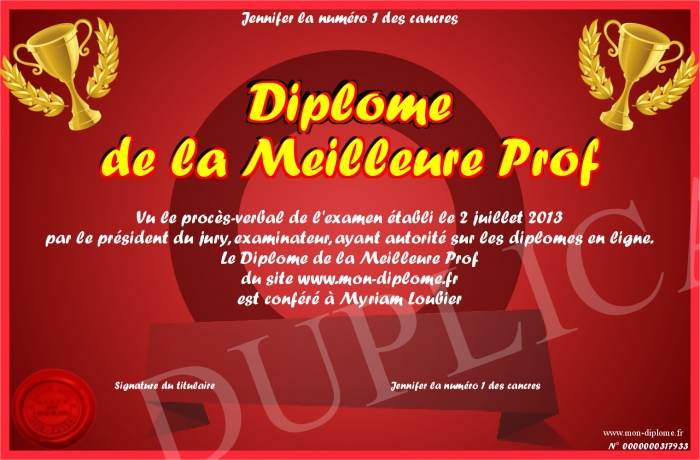 Envoyez par email votre Diplôme de la Meilleure Prof personalisé