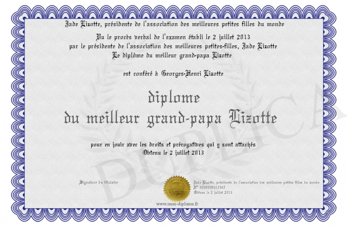 Envoyez par email votre diplôme du meilleur grand-papa Lizotte personalisé