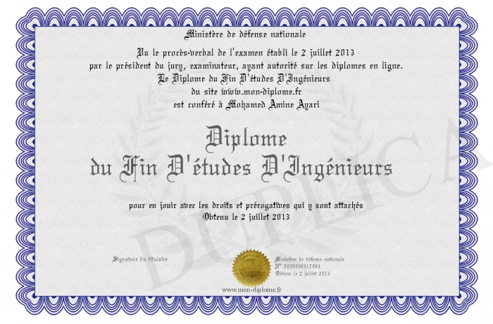 Envoyez par email votre Diplôme du Fin D'études D'Ingénieurs personalisé