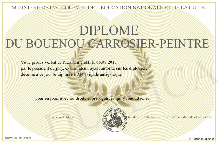 Envoyez par email votre Diplôme du bouenou carrosier-peintre personalisé