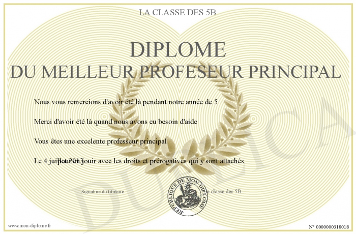 Envoyez par email votre Diplôme du meilleur profeseur principal personalisé