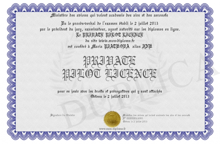 Envoyez par email votre PRIVATE PILOT LICENCE personalisé