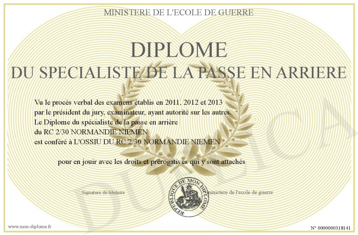 Envoyez par email votre Diplôme du spécialiste de la passe en arrière personalisé