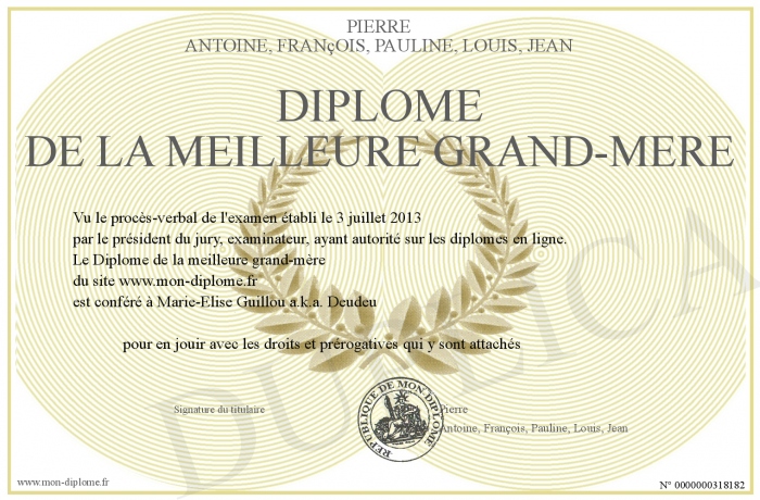 Envoyez par email votre Diplôme de la meilleure grand-mère personalisé