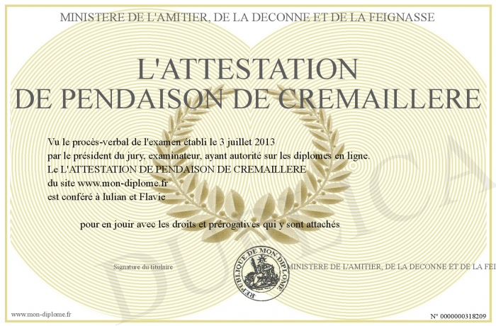Envoyez par email votre L'ATTESTATION DE PENDAISON DE CREMAILLERE personalisé