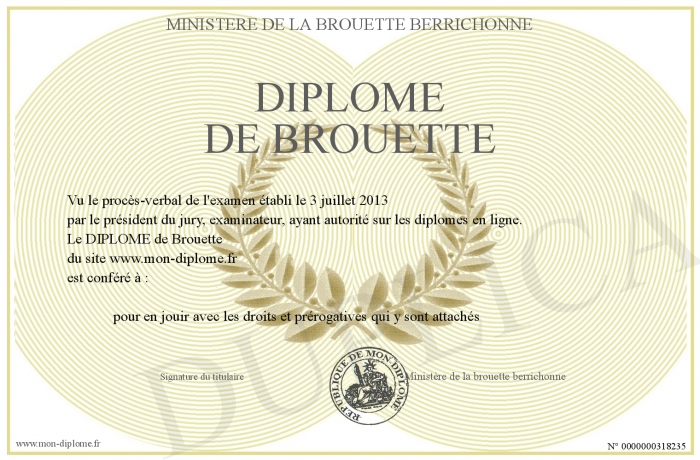 Envoyez par email votre DIPLOME de Brouette personalisé