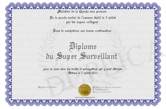 Envoyez par email votre Diplôme du Super Surveillant personalisé