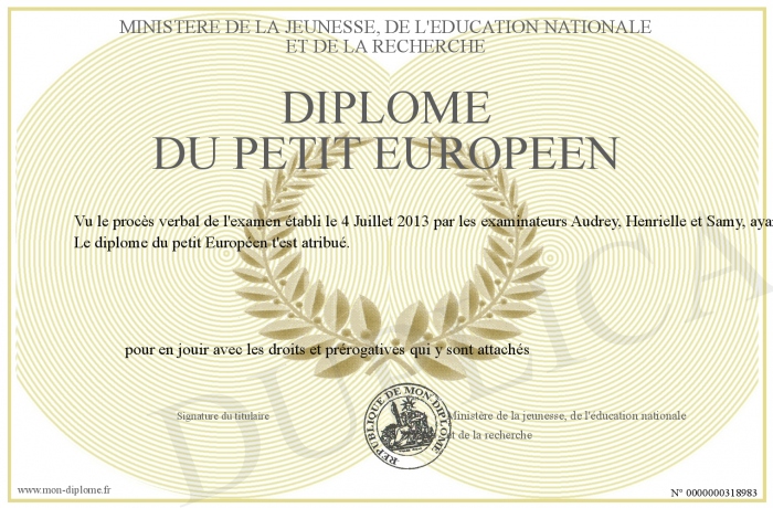 Envoyez par email votre Diplôme du Petit Européen personalisé