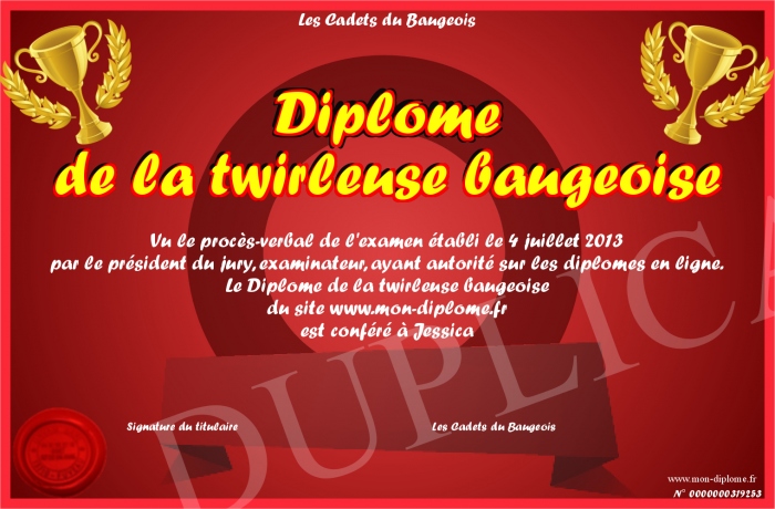 Envoyez par email votre Diplôme de la twirleuse baugeoise personalisé