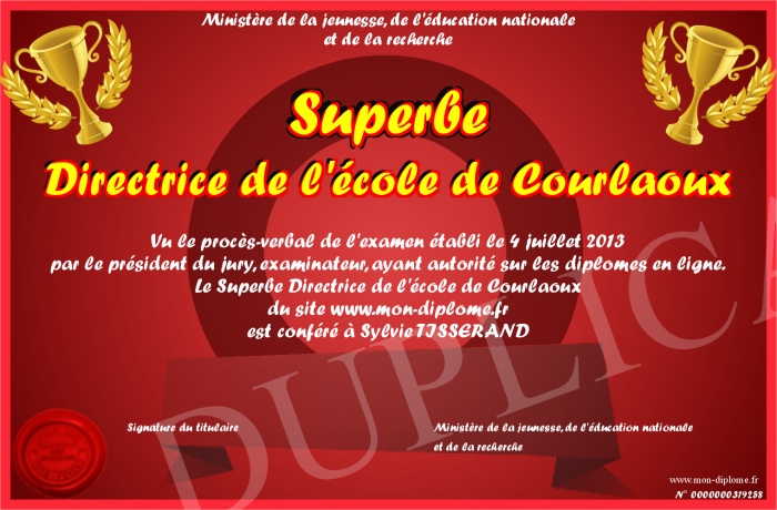 Envoyez par email votre Superbe Directrice de l'école de Courlaoux personalisé