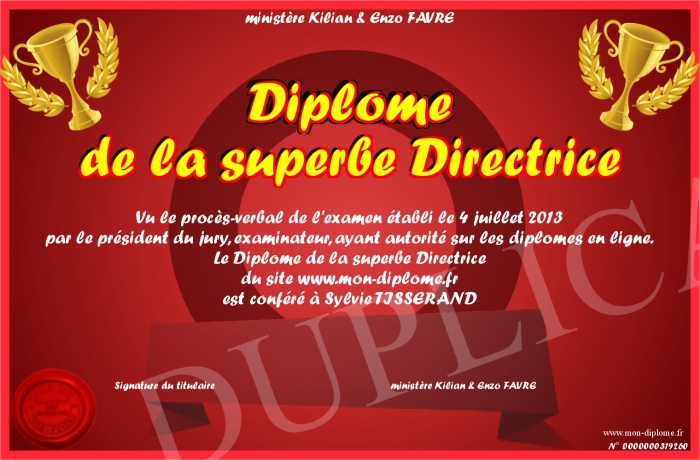 Envoyez par email votre Diplôme de la superbe Directrice personalisé