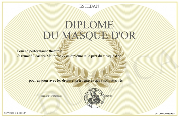 Envoyez par email votre Diplôme du masque d'or personalisé