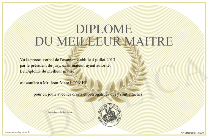 Envoyez par email votre Diplôme du meilleur maitre personalisé