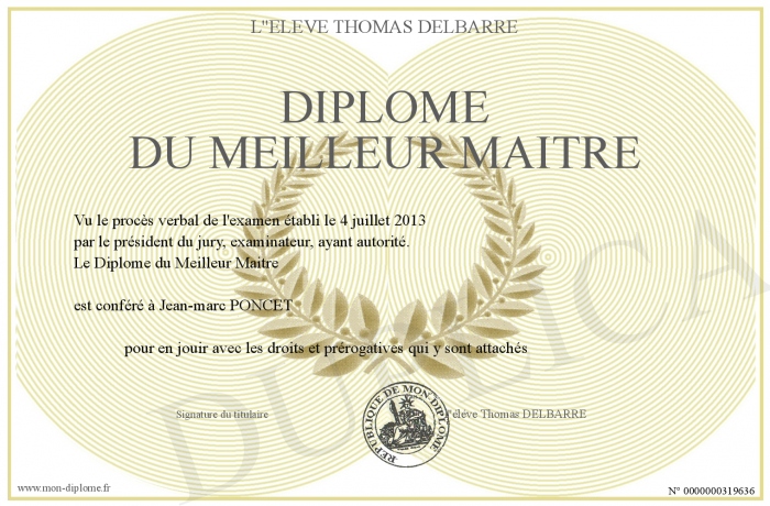 Envoyez par email votre Diplôme du Meilleur Maitre personalisé