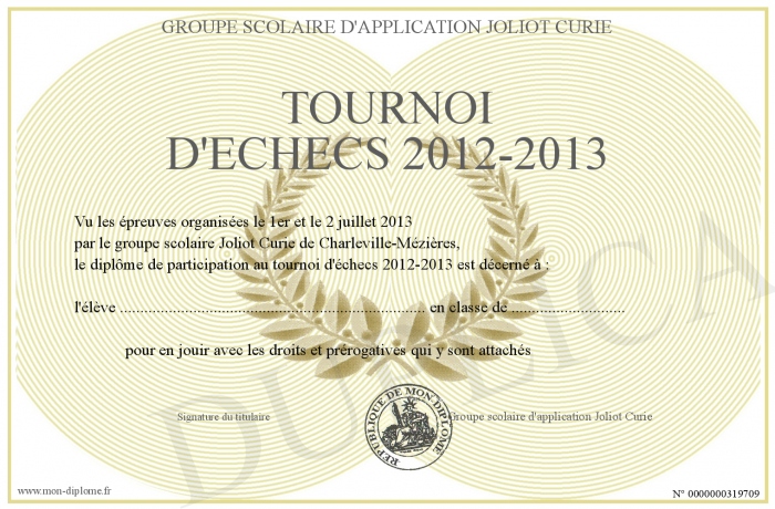 Envoyez par email votre Tournoi d'échecs 2012-2013 personalisé