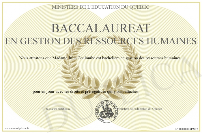 Envoyez par email votre Baccalauréat en gestion des ressources humaines personalisé