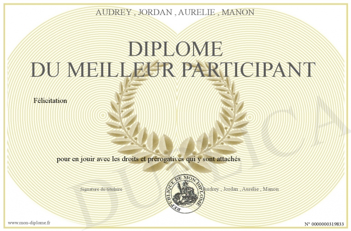 Envoyez par email votre Diplôme du Meilleur participant personalisé