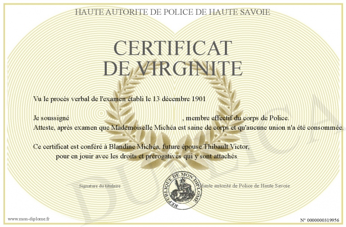 Envoyez par email votre Certificat de virginité personalisé