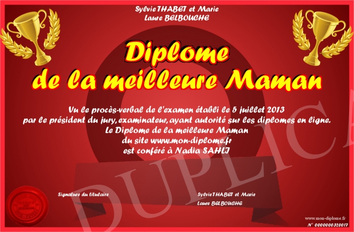Envoyez par email votre Diplome de la meilleure Maman personalisé