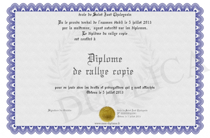 Envoyez par email votre Diplôme de rallye copie personalisé