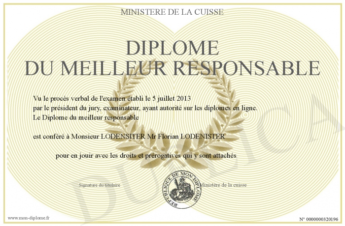 Envoyez par email votre Diplôme du meilleur responsable personalisé