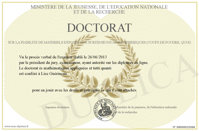 Envoyez par email votre doctorat sur la fiabilité de matériels exposés aux surtensions athmosphériques (coups de foudre, quoi) personalisé