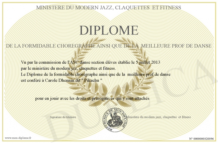 Envoyez par email votre Diplôme de la formidable chorégraphe ainsi que de la meilleure prof de danse personalisé