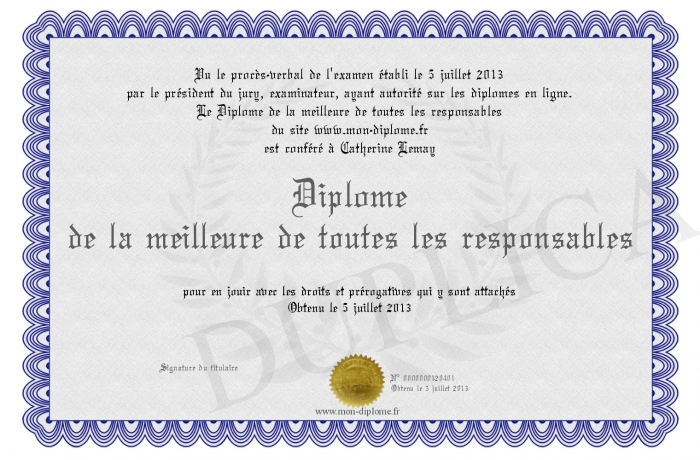 Envoyez par email votre Diplôme de la meilleure de toutes les responsables personalisé