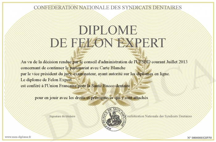 Envoyez par email votre Diplôme de Félon expert personalisé