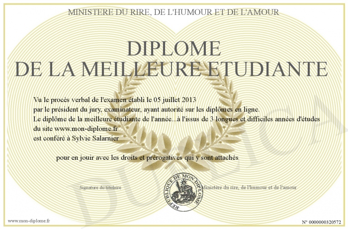 Envoyez par email votre Diplôme de la meilleure étudiante personalisé