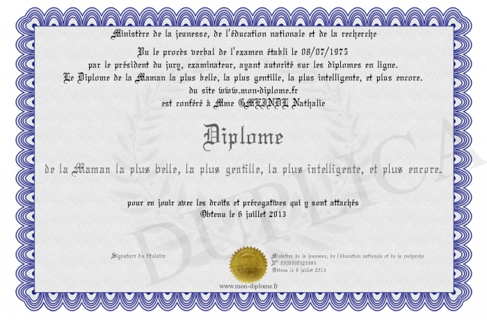 Envoyez par email votre Diplôme de la Maman la plus belle, la plus gentille, la plus intelligente, et plus encore. personalisé
