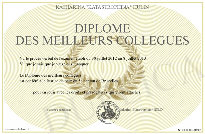 Envoyez par email votre Diplôme des meilleurs collègues personalisé