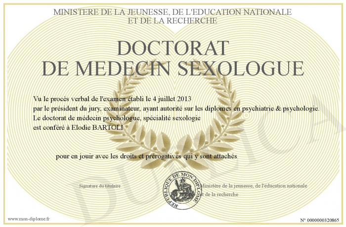Envoyez par email votre Doctorat de médecin sexologue personalisé