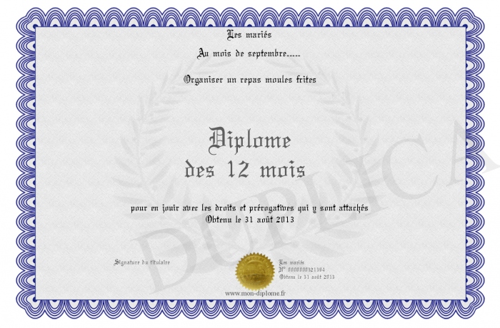 Envoyez par email votre Diplôme des 12 mois personalisé