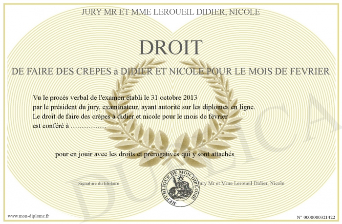 Envoyez par email votre droit de faire des crèpes à didier et nicole pour le mois de février personalisé