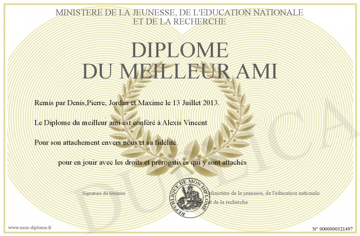 Envoyez par email votre Diplôme du meilleur ami personalisé