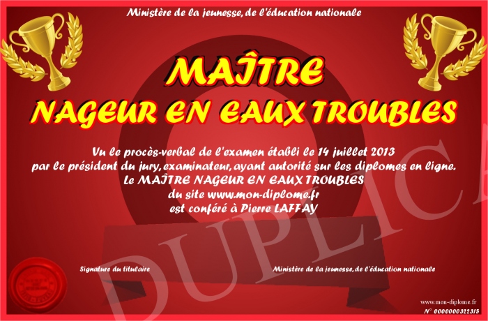 Envoyez par email votre MAÎTRE NAGEUR EN EAUX TROUBLES personalisé