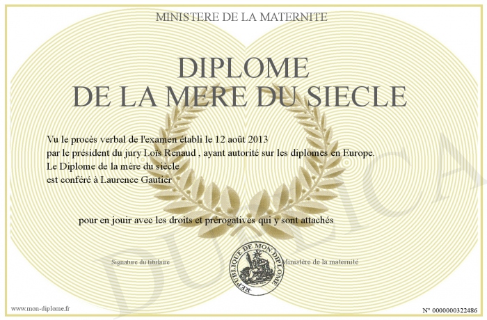 Envoyez par email votre Diplôme de la mère du siècle personalisé