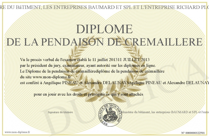 Envoyez par email votre Diplôme de la pendaison de crémaillère personalisé