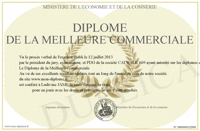 Envoyez par email votre Diplôme de la Meilleure Commerciale personalisé
