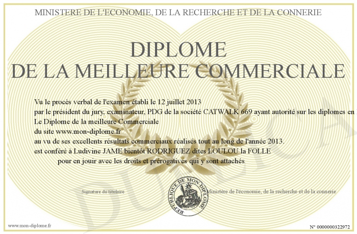 Envoyez par email votre Diplôme de la meilleure Commerciale personalisé
