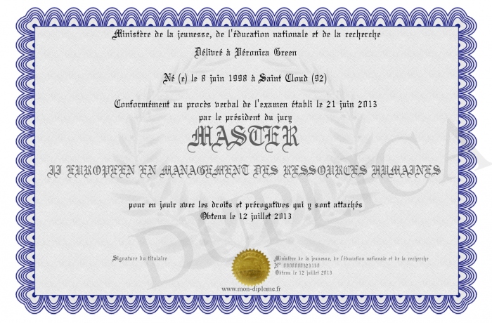 Envoyez par email votre MASTER II EUROPEEN EN MANAGEMENT DES RESSOURCES HUMAINES personalisé